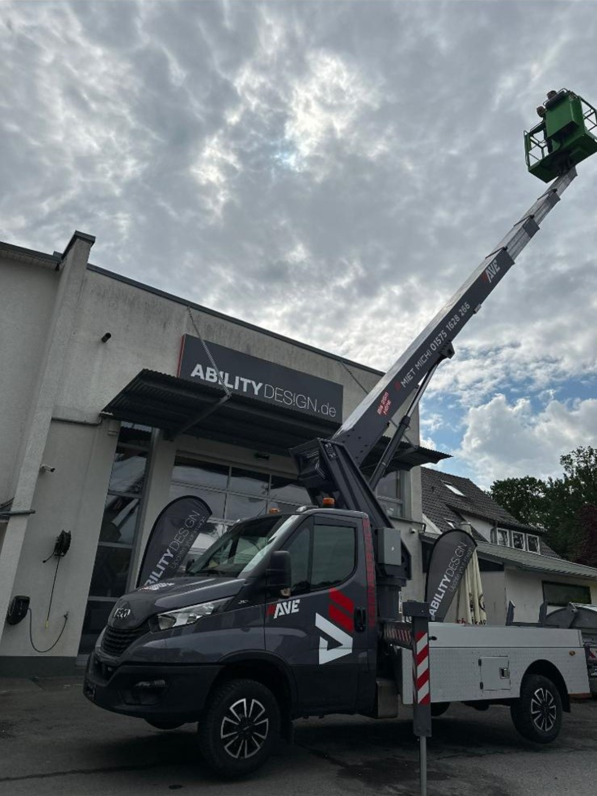 Der 25-Meter-Hubsteiger bietet maximale Reichweite und Sicherheit bei Arbeiten in der Höhe. Kompakt und einfach mit einem Klasse B Führerschein zu steuern.